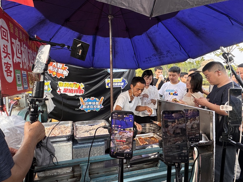 卖6块钱一份的鸡排摊最近生意谈得上百万。一名穿着细高跟鞋的女子向油烟走近,自称是某著名公司老板的女朋友,并带来了“百万美元餐饮合作”的邀请函。站在旁边的是一家瓷器店的老板,拍着胸脯承诺要用百万年薪聘请摊主搬运货物。所有这些莫名其妙的“财富”无一例外地被摊主李俊勇拦截:“我只赚我工作能赚到的钱。”我的工作是卖鸡排。李俊勇坚守铁垛,围油锅近十年。与其他供应商相比,他除了会说一些好笑好笑的话语外,似乎并没有什么特别的地方。生活本该就这样继续下去,直到9月底的一个下午,一段他走出摊位的视频走红,李俊勇成了“智者”。48岁的生活突然被推向前,他正在努力适应自己“网红”的新身份。他在录音室脱掉黄色短袖的油,换上黑色西装、蓝色领带、银框眼镜,拍照片宣传音乐节拍。西装肩部宽松地垂在手臂上,与灰色的水洗长裤和一成不变的运动鞋不协调。被镜头定格后,聚集在我身边的人不仅有好奇,还有人持怀疑态度,还有人把李俊勇的摊位当作“朝圣地”——从临沂拉面哥门口,到给郭理发店,再到景德镇李俊勇的鸡排摊,人流量不会长久。但这一次,来自四面八方的主播依然压着手机,试图潜水。他们有些短暂的关注,或者等待下一个机会被选择。 10月15日,鸡排摊挤满了来自全国各地的主播。新京报记者熊立新拍到了中间的鸡PAI兄弟。他第一次有了准确的世界坐标。打开地图,“景德镇鸡排哥”位于市中心的交通要道珠山大道上。旁边就是有70多年历史的中国陶瓷博物馆。竹山大道以绿化围栏隔开,一侧是待产生的垃圾,另一侧是人行道。除了清洁工之外,很少有人特意来这里。但最近一个多月的时间,这里已经成为了这座城市混乱的中心。十月中旬,景德镇仍是夏季。下午1点多,商贩们在阳光下骑着三轮车来到这里。有的人丢下碗饭,骑了十几趟就出发了。公里,正好能拿到靠近砍砍哥的座位。距离离开马厩还有两个小时,但摊贩已经排起了长龙,顾客排起了数百米长的队伍,其中包括当地人和只坐高铁的游客。景德镇有自己的“名言”——游行开始时,黑色幕布上挂着鸡饼哥的名言:“这种场面还是我掌控的”、“如果爆炸不合时宜,我不会原谅”。 10月15日,鸡排摊位上,黑色的窗帘上挂着鸡排哥的一句话。新京报记者 熊立新 摄 一个多月前,9月21日下午三八点,砍砍哥一如往常。旁边有一所中学,里面挤满了学生。人们围拢过来,喊着要买鸡排。这名矮小精干的中年男子站在喧嚣之上,急忙赶来。我遵守命令:“你的工作完成后做,你的工作完成后做……现在的情况我还在掌控之中!”他的语气急切,带有当地口音,手臂也随着话语上下摆动。这位探店博主捕捉到了俏皮有趣的场景,并将其发布到网上。该视频获得超过200万点赞和转发,而景德镇市常住人口只有160万多。此后,大量类似的评论,包括“很有情感价值”,以及该视频在社交平台上传播,“鸡排哥”成为了频繁的话题。之所以突然出名,走红后能赚多少钱?一些民宿老板认为,鸡排哥的走红绝非偶然。 “你可以用你的言语让顾客满意,如果你有很高的情商,这很快就会发生。”然而,一些网约车司机认为他没什么特别的。 “他是个勤劳的农民工,周围人多,没必要太追求他。”不过,不可否认的是,这个摊位吸引了足够多的好奇心。鸡排哥“4点30分后为学生服务,不接受散客”、“学生便宜1元”的经营原则也被挖出来,成为网友“鸡排哥人品”的一部分。短短两天时间,吃他家鸡排的排队时间从几分钟延长到凌晨两点,甚至有人在30摄氏度的高温下等了7个小时。采购员也出现在排队,一份原价6元的鸡排卖到了150元。 10月15日,当鸡排哥骑着电动三轮车出现在现场时,等待已久的人们突然变得焦躁起来。其他摊位前的顾客也纷纷拿着手机跑到这里,四面八方传来喊叫声:“嚯!”鸡排哥,看这里!”外面的人们踮起脚尖,四处张望,有人拿着手机站在塑料凳子上,有的甚至爬上一米。高高的人行道护栏高喊着:“鸡排哥,我爱你!”鸡哥们得像个英雄,笑着向大家祝贺,同时维持秩序:“你们也很热心,请放过我吧。”说着,他迅速搭起摊位,把鸡排放进去。锅里发出“滋滋”的声音,烟雾直冲人们的鼻子。 手里拿着手机的顾客顿时心烦意乱,鸡排哥的嘴角弯了弯,另一只手看着锅里的油,把他的手臂烧红了。 摊位上的生意持续中断。仍然致力于p提供“情感价值”。他一遍又一遍地重复:“为您服务是我的荣幸。” 10月21日,鸡排摊前挤满了顾客。新京报记者那熊立新 摊位对面,来自浙江杭州、广州、广东、江西南昌等地的主播提前架起了直播框。美食探索博主余斌(化名)是第一个发现“交通信号”的人。鸡排哥成名的第二天,他发现自己两年前发布的一段视频突然有很多新网友互动。视频的主角是鸡排哥。当时,他家附近摆了一个鸡排摊。 “周围的人都说鸡排摊味道好,好吃,很多人都拍了视频。他还看到鸡排小伙一边煎鸡排一边“吹牛”:“这个操作我不敢说很完美,但我可以说我可以很流利地做。”“当时我觉得鸡排哥的演讲很有趣,就去拍了视频。” “于斌的视频发布后,数千人点赞。于斌与鸡肉派兄弟合影。照片由采访者提供。截至9月底,上述访问该店的博主拍摄的新视频在不到24小时内点赞数超过10万。”第一反应就是获取流量。 “当于斌赶到摊位时,已经有60、70